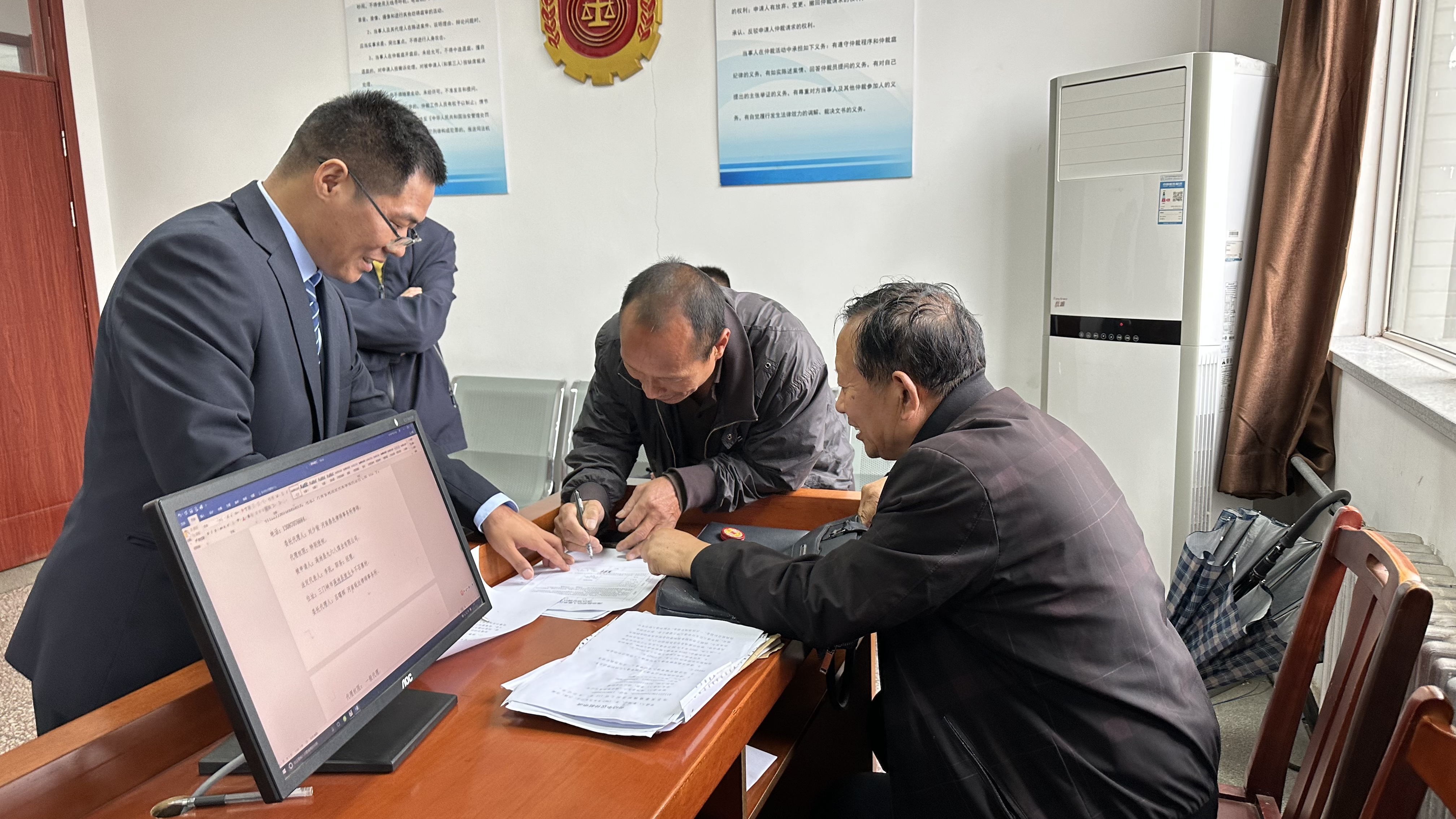 推開澠池縣人社局仲裁院標準化仲裁庭大門,只見墻上高懸仲裁徽章,圓形的會徽里有一座天平,徽章上的金色天平熠熠生輝。如果說天平象征著法治,那么天平的兩端應(yīng)該是公平和正義。近年來,澠池縣仲裁院以構(gòu)建和諧勞動關(guān)系和提升服務(wù)質(zhì)量為總體目標,創(chuàng)新服務(wù)理念,改進服務(wù)方式,為勞動者撐起了一把法律的保護傘。