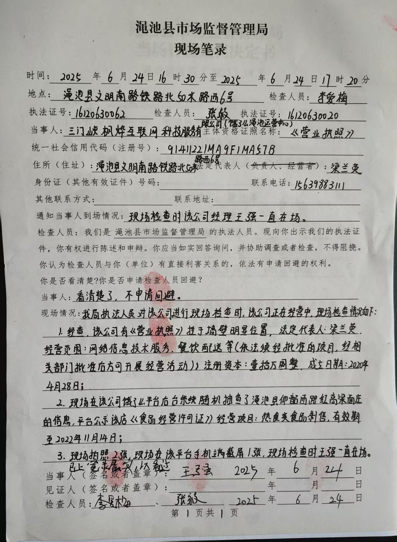 | 29 | 2025.6.24 | 餐飲 | 三門(mén)峽楓燁互聯(lián)網(wǎng)科技服務(wù) 有限公司 | 點(diǎn)擊