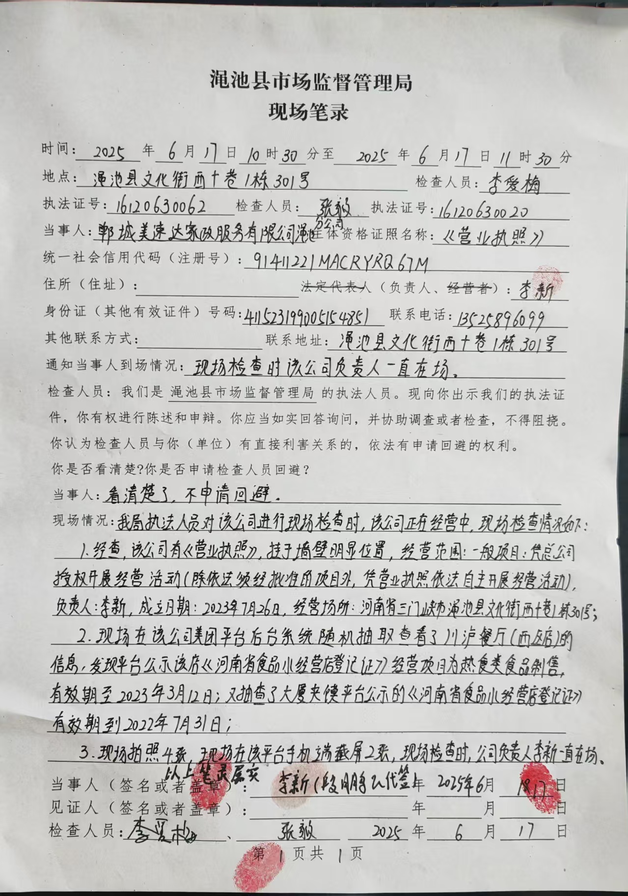 | 15 | 2025.6.11 | 流通 | 澠池縣真美善便利店 | 點(diǎn)擊查看 | 仰韶市場(chǎng)監(jiān)管所 | 韓超峰 王宏偉 |