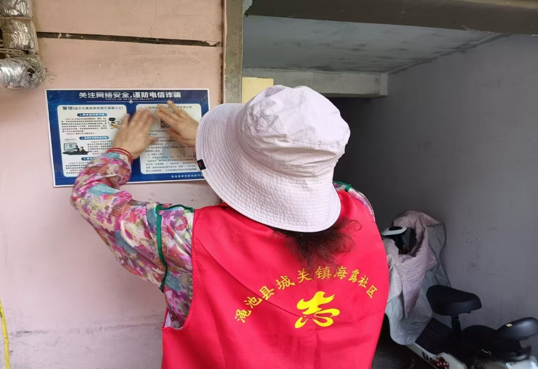 為切實(shí)維護(hù)居民財(cái)產(chǎn)安全,提升居民反詐意識(shí)。近日,城關(guān)鎮(zhèn)海露社區(qū)以創(chuàng)建“平安法治星”為抓手,持續(xù)加大反電詐宣教力度,多措并舉、靶向施策,全方位、多角度開(kāi)展系列反電詐宣傳活動(dòng),不斷提升居民安全感。