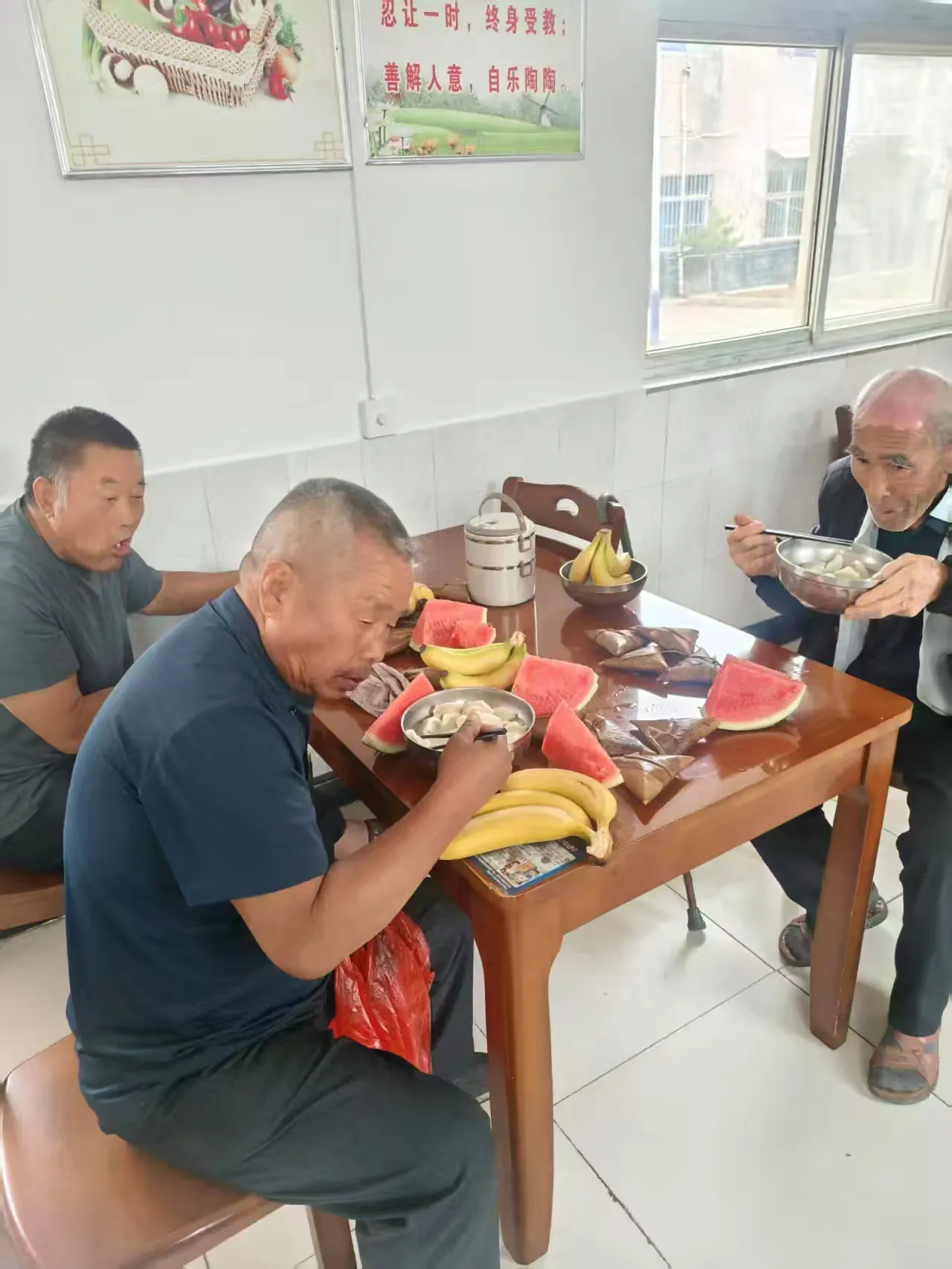 “大爺,慢點吃,吃完不夠鍋里還有呢”在仁村鄉(xiāng)敬老院的食堂里,志愿者們將熱氣騰騰的餃子端上餐桌。志愿者陪老人們圍坐在餐桌前邊吃邊聊,耐心傾聽他們的心聲,場面其樂融融。飯后,志愿者們?yōu)槔先藗兯蜕宪浥吹南憬丁⑶逄鸬聂兆?、爽口的西瓜。一粥一飯,總能表達中國人內(nèi)心最樸素的溫情。此次節(jié)前敬老陪餐活動,讓老人們感受到了社會的關愛和溫暖,讓傳統(tǒng)節(jié)日更添溫情色彩。